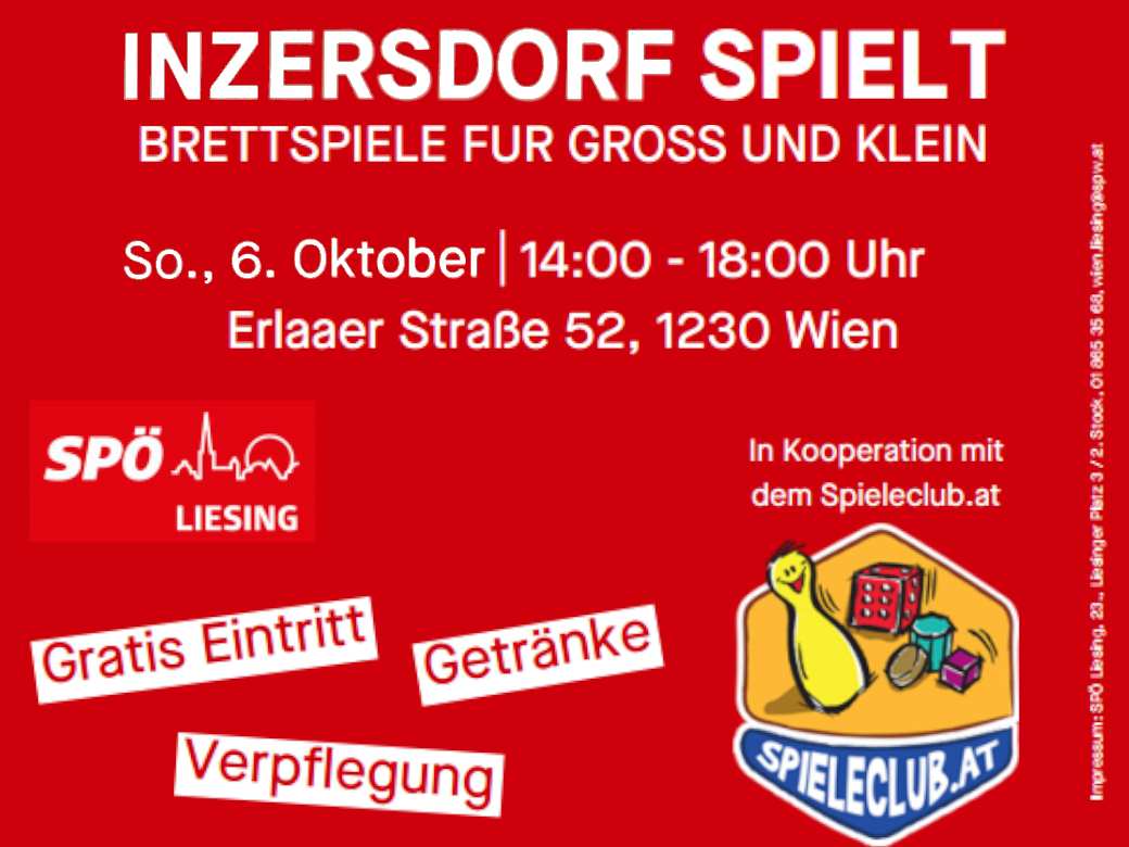 Die SPÖ Liesing und wir laden herzlich zum gemeinsamen Spieleevent ein.
